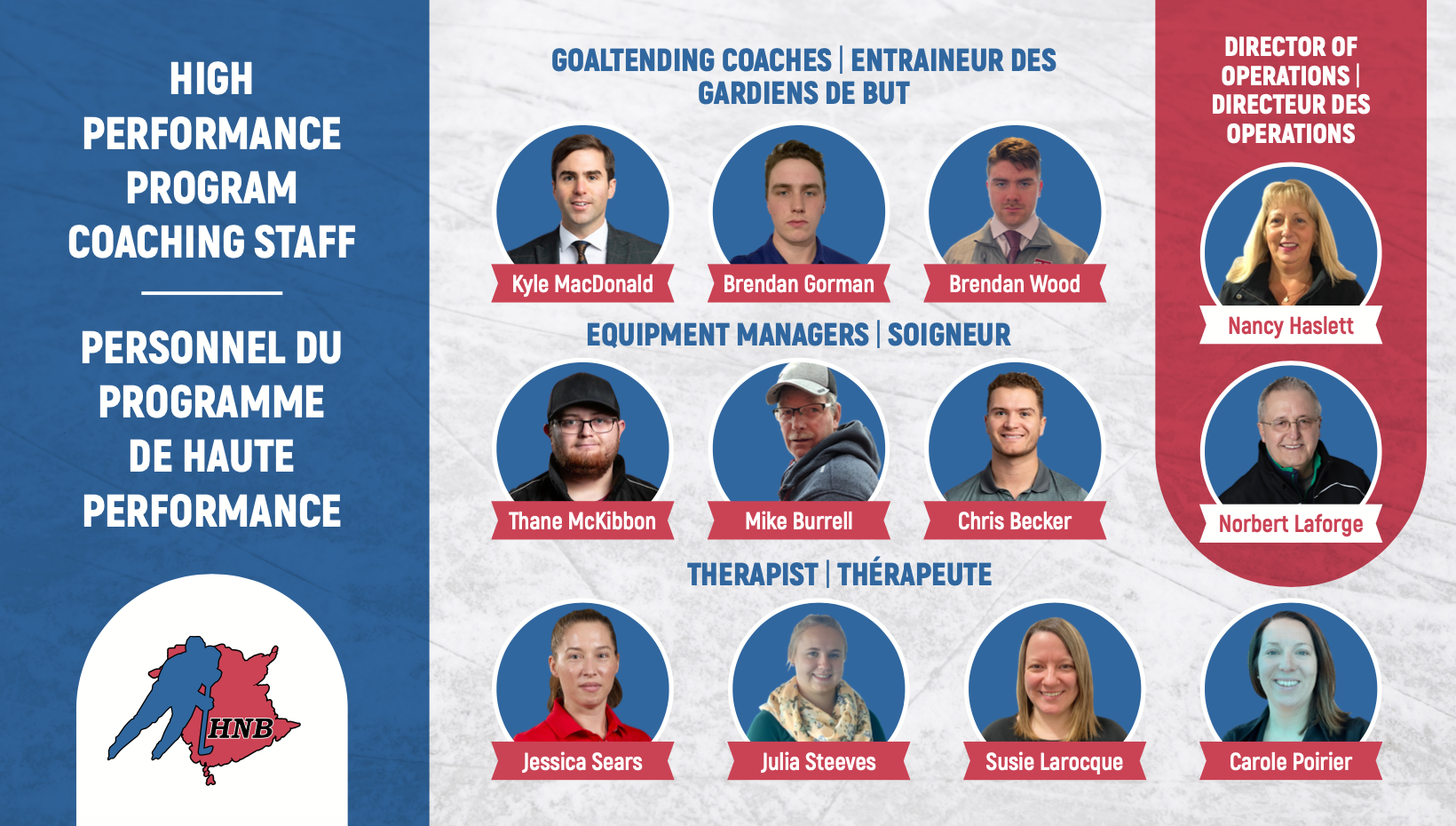 Hockey New Brunswick is pleased to announce the coaching staffs for this year's High Performance Program