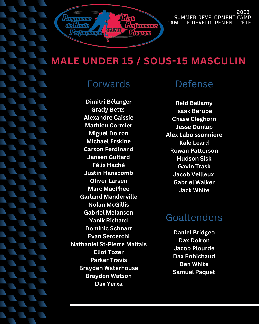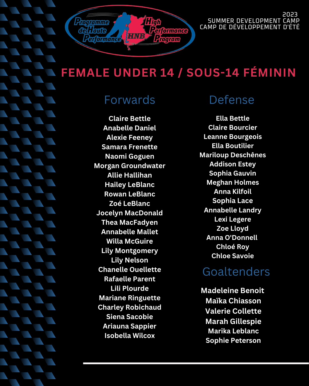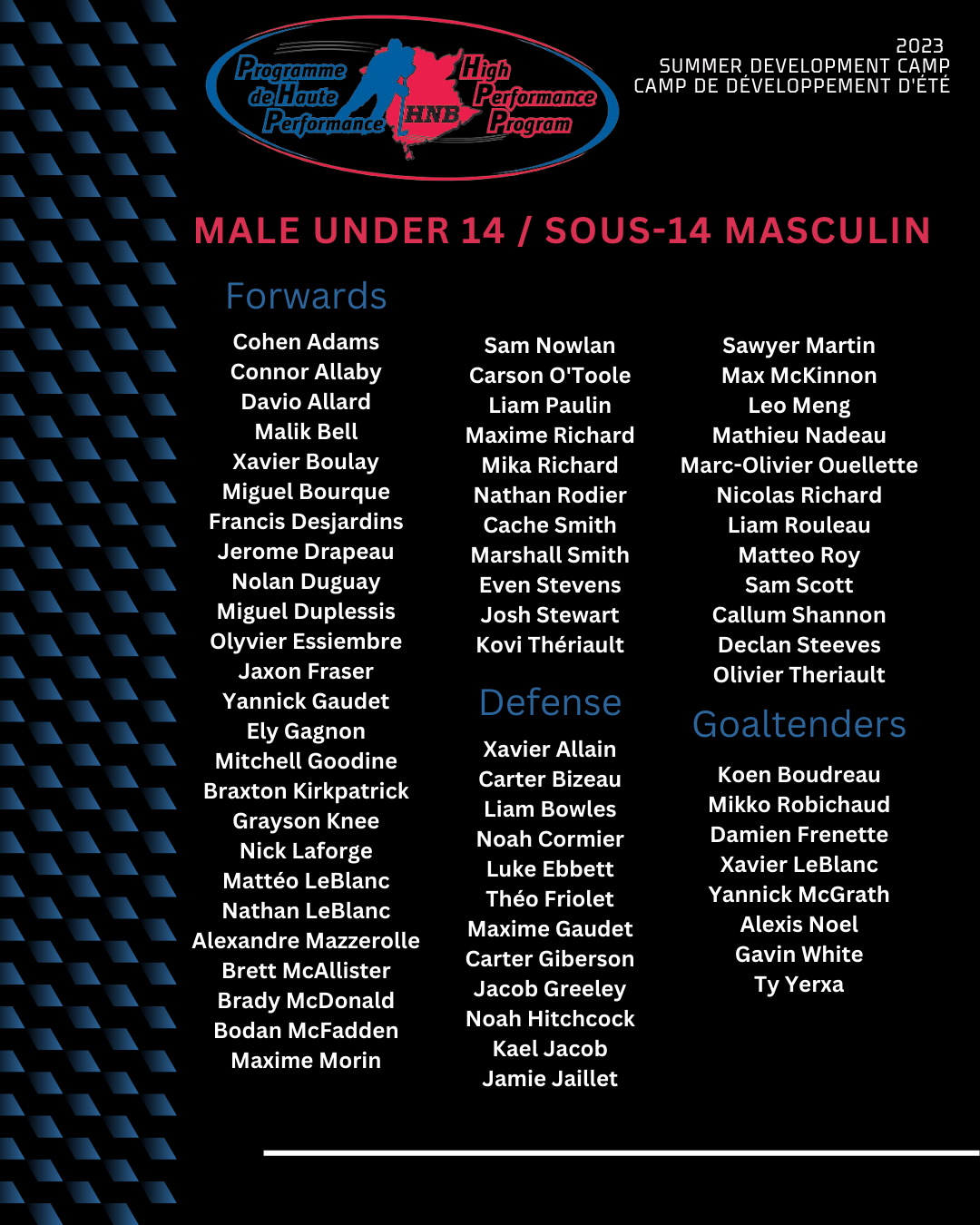 The HNB Cup is an identification camp used to identify the players who will advance to the Summer Development Camps this July. Following the Summer Development Camps, Male U14, Male U15, Female U14 and Female U16 teams will compete against Provincial teams from Nova Scotia, Newfoundland and Labrador and PEI at the 26th Annual Atlantic Challenge Cup, October 5th-8th in Moncton, NB.